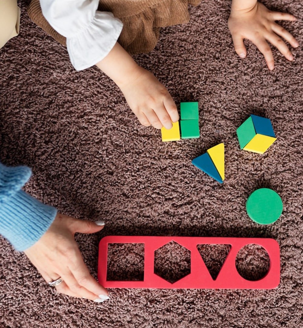 It involves the deception of objects that are specially designed that separate the attributes. It sharpens fine muscle skills, visual and auditory senses and improves coordination and the ability to order and differentiate. Items include Pink Tower, Brown Stairs, Cylinders blocks , Color tablets etc. Sensorial activities allow a child to refine their individual senses: